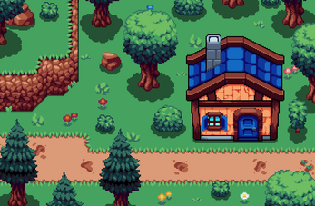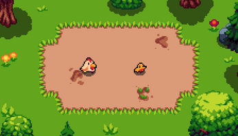 Includes Grass Tile (Two Details + Two Flowers) and Dirt Tile (One Detail), One Tree, Two Bushes, Two Rocks, Herb, Player House and Npc House, Chicken ( Idle and walk animations), tomato and potato with their seeds and crops with 5 growth stages, items tomato, potato, wood and an apple.